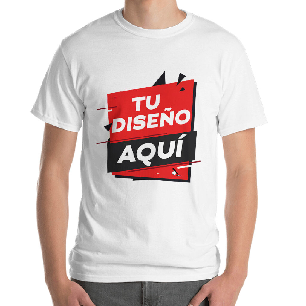 Camiseta unissex com manga curta, disponível nos tamanhos P ao GG. Personalize com qualquer estampa.